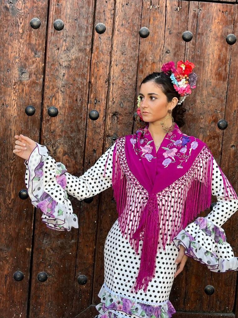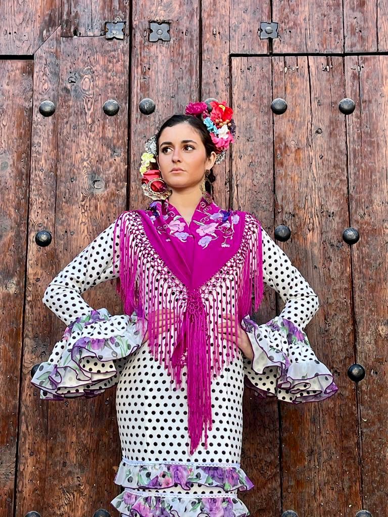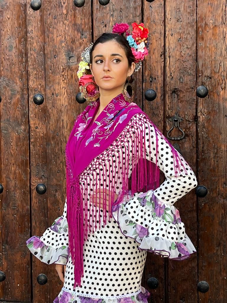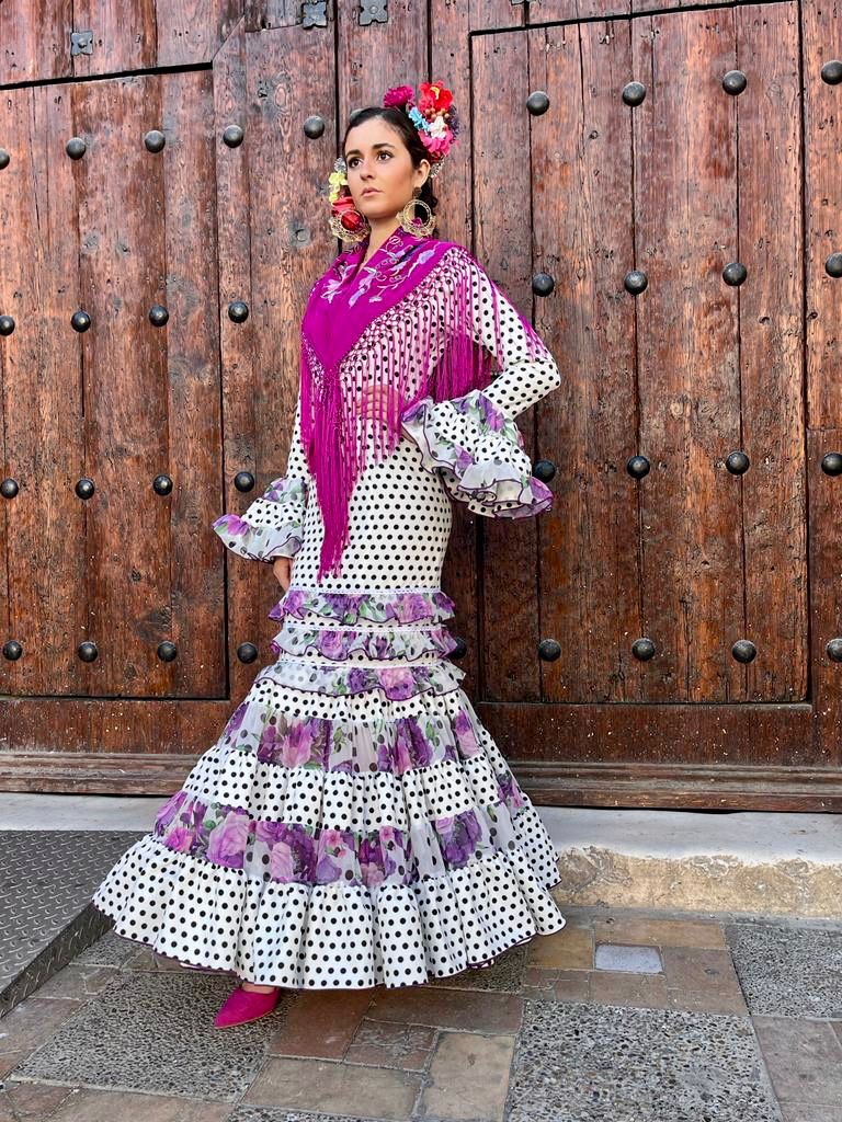 Vestido canastero con volantes en el talle , combinado en dos telas. Manga larga con volantes canasteros en el puño y escotes en pico. Disponible en diferentes colores.