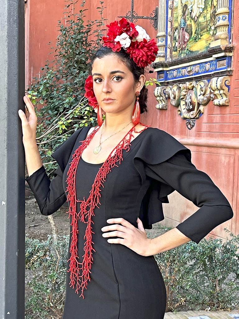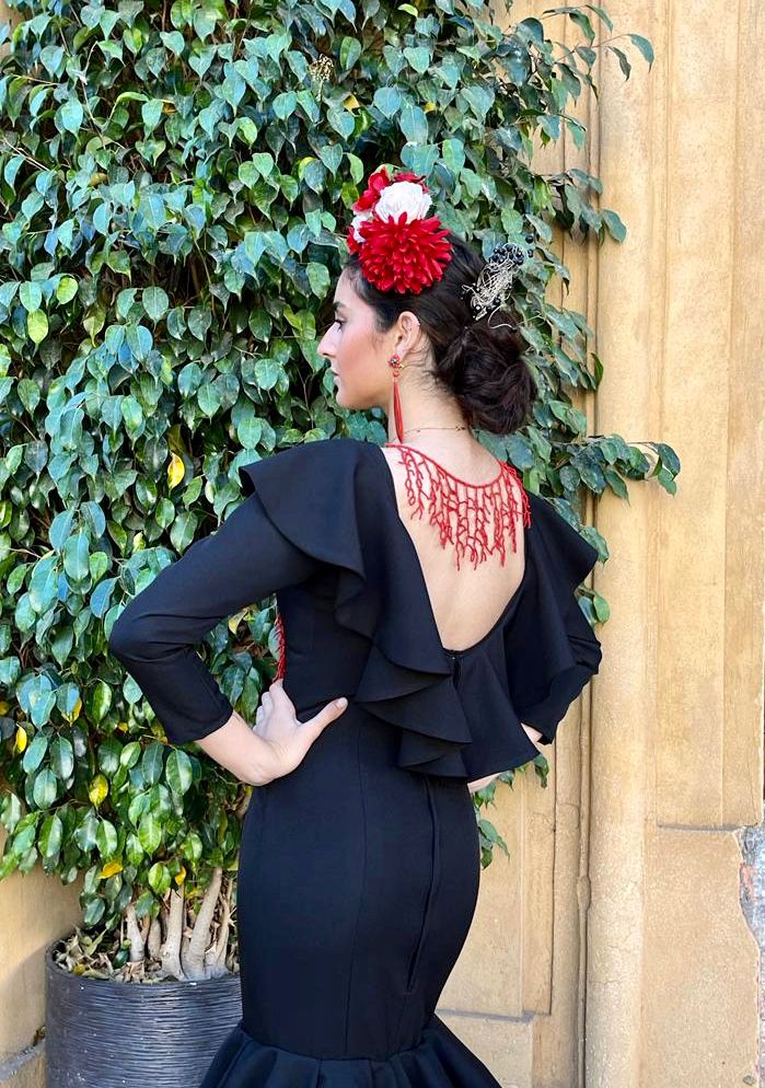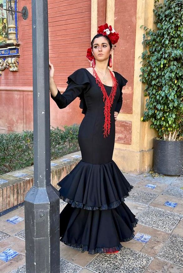 Vestido de talle bajo con 2 volantes dobles, con volumen en la falda. Manga larga con volantes en la sisa que baja al escote de la espalda. Disponible en diferentes colores.